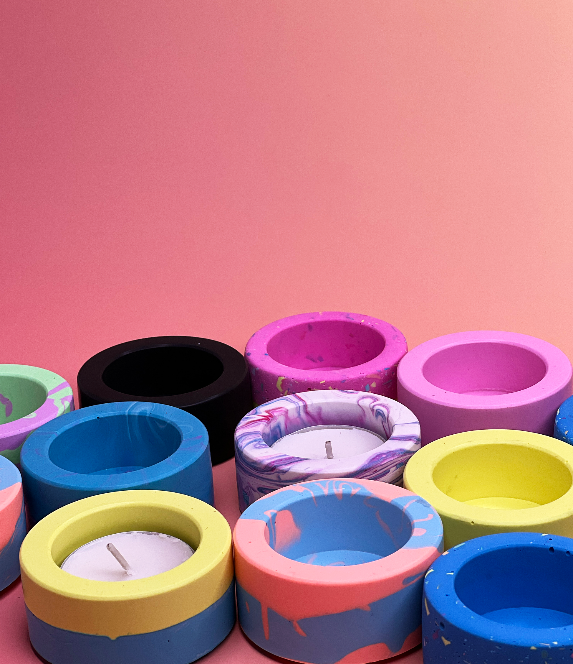 Colorful Jesmonite Tealight Holder Set – Bold Shelf Decor – Handmade